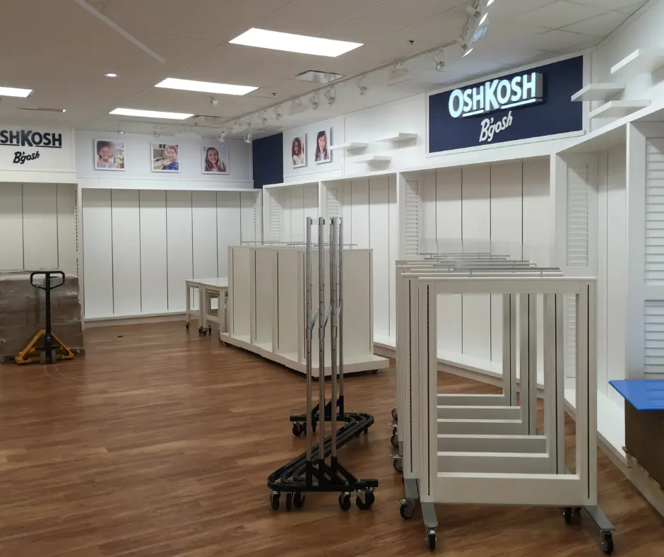 DJO Construction a réalisé l’aménagement intérieur de la boutique Carter’s OshKosh à Laval, alliant simplicité et fonctionnalité. Cet espace lumineux et moderne est conçu pour offrir une expérience de magasinage agréable, en accord avec l’esprit de la marque.